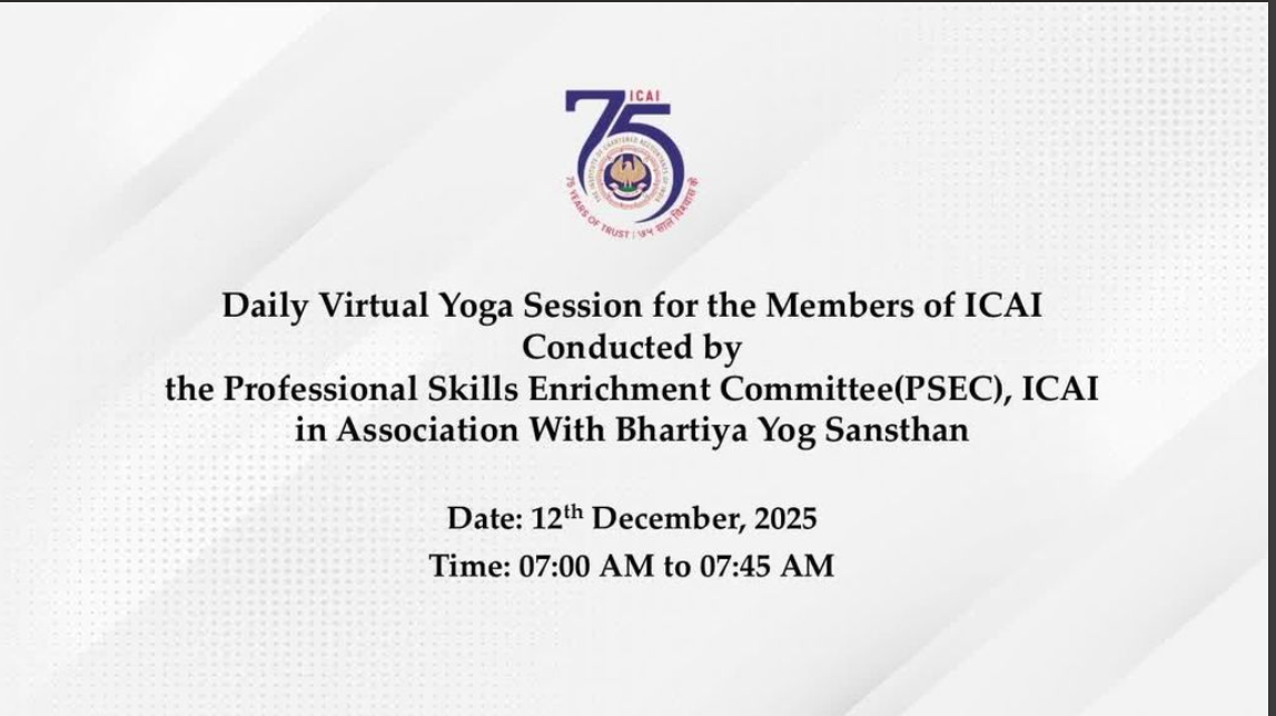 Daily Virtual Yoga Session for the Members of ICAI...