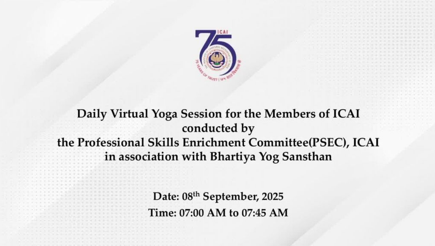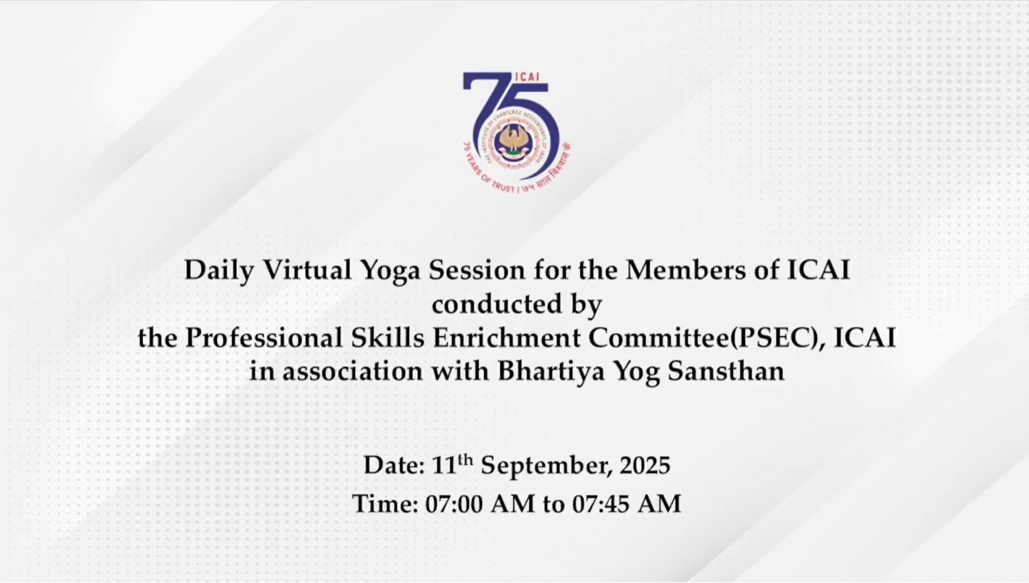 Daily Virtual Yoga Session for the Members of ICAI...