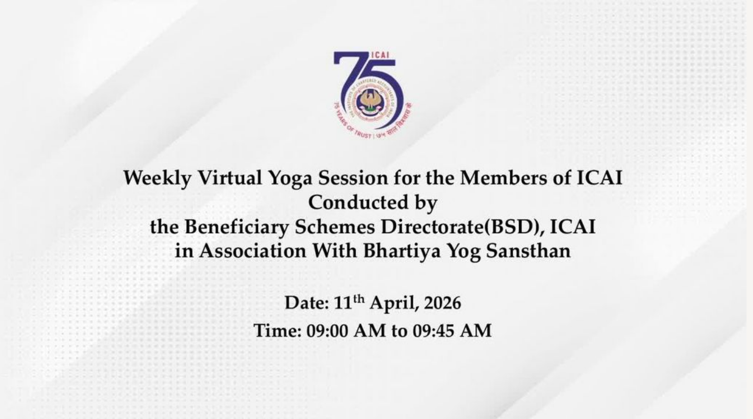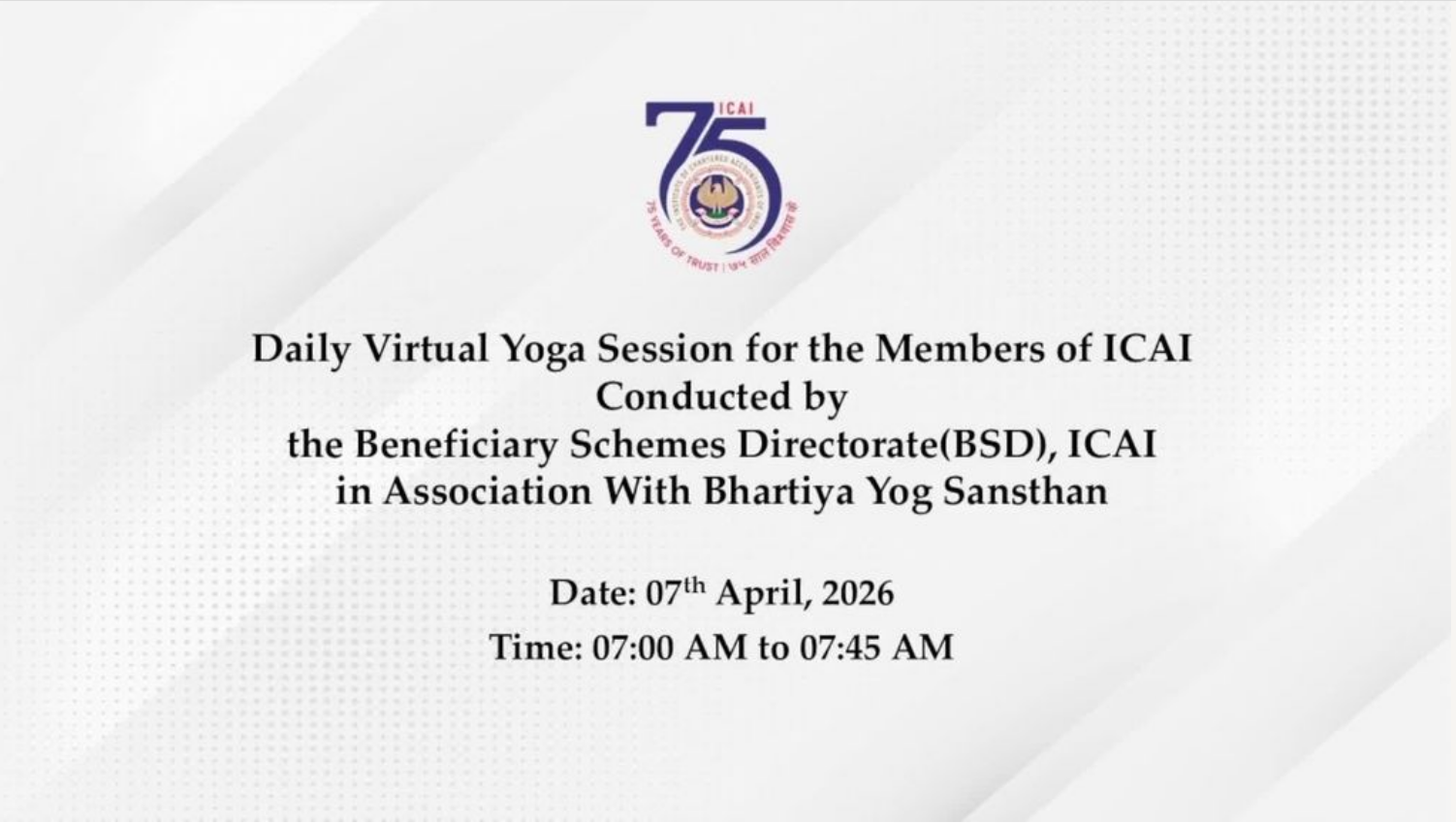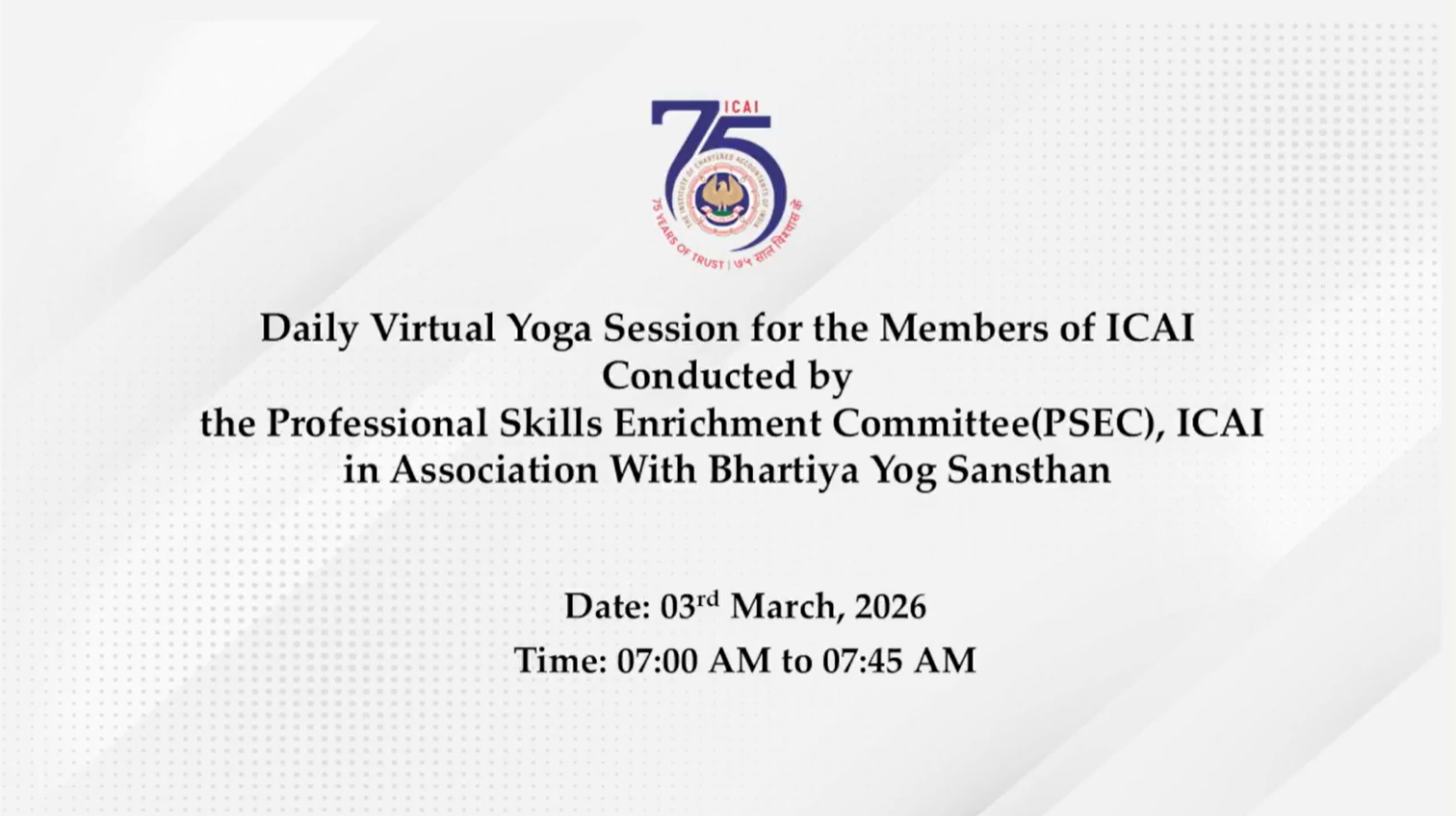Daily Virtual Yoga Session for the Members of ICAI...
