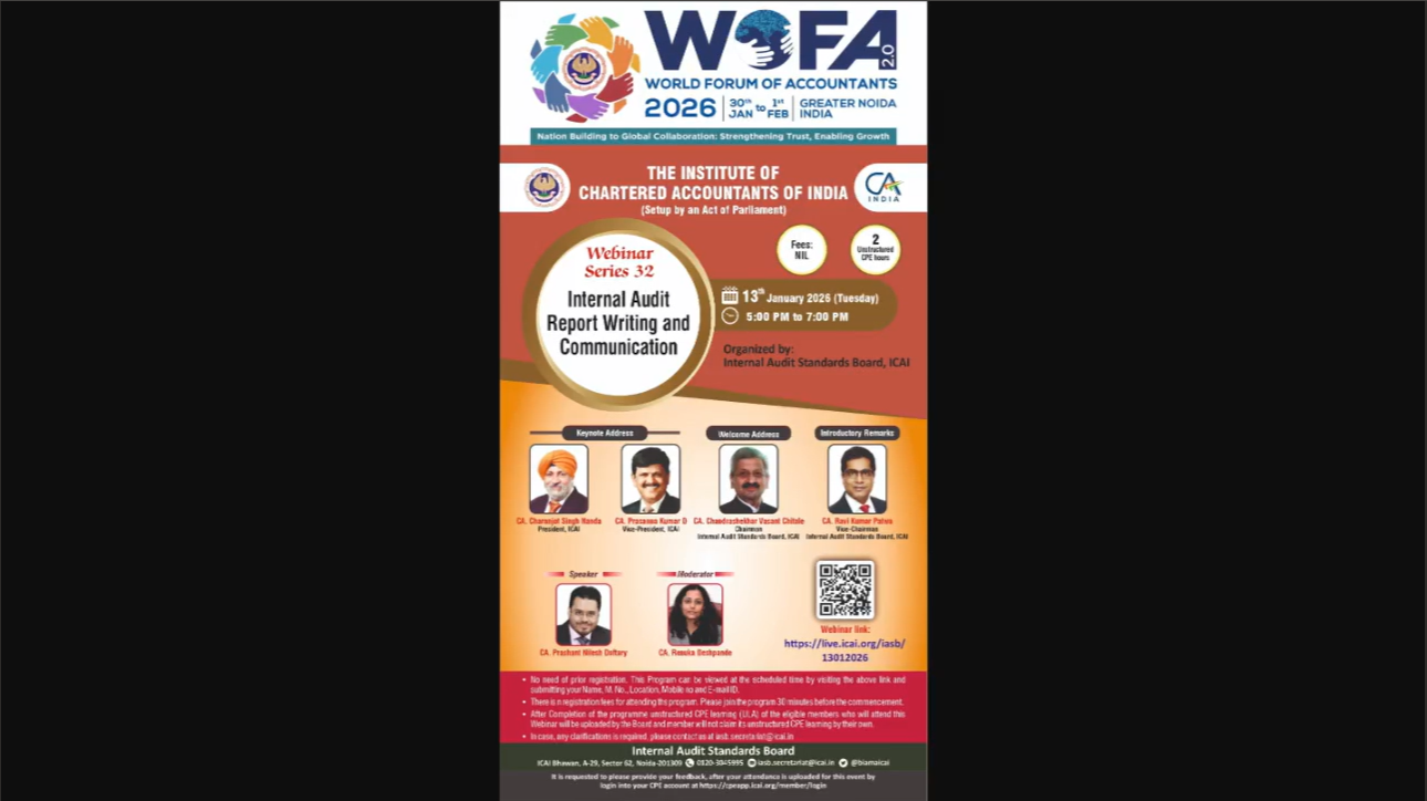 Webinar on “Internal Audit Report Writing and Co...
