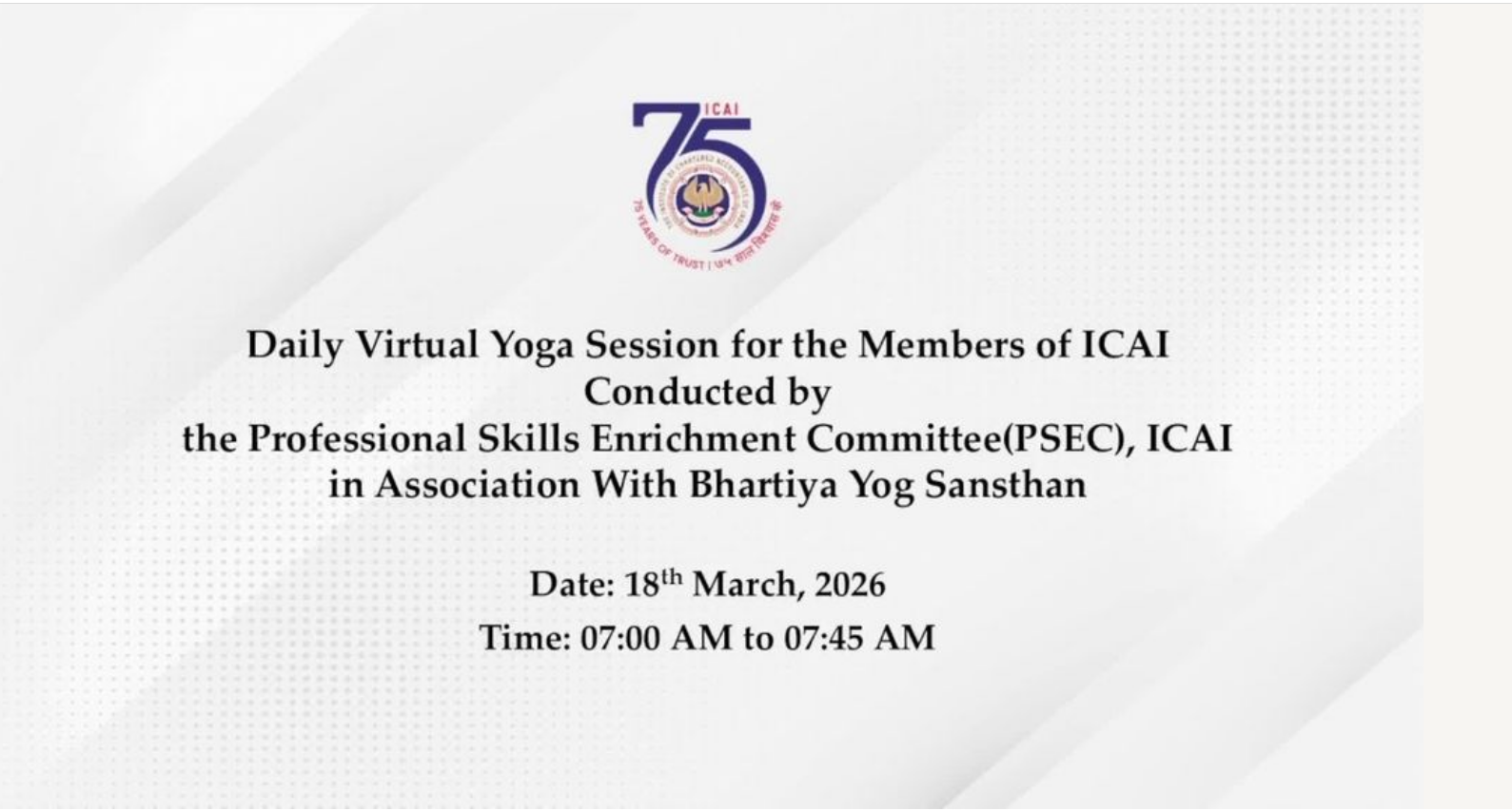 Daily Virtual Yoga Session for the Members of ICAI...