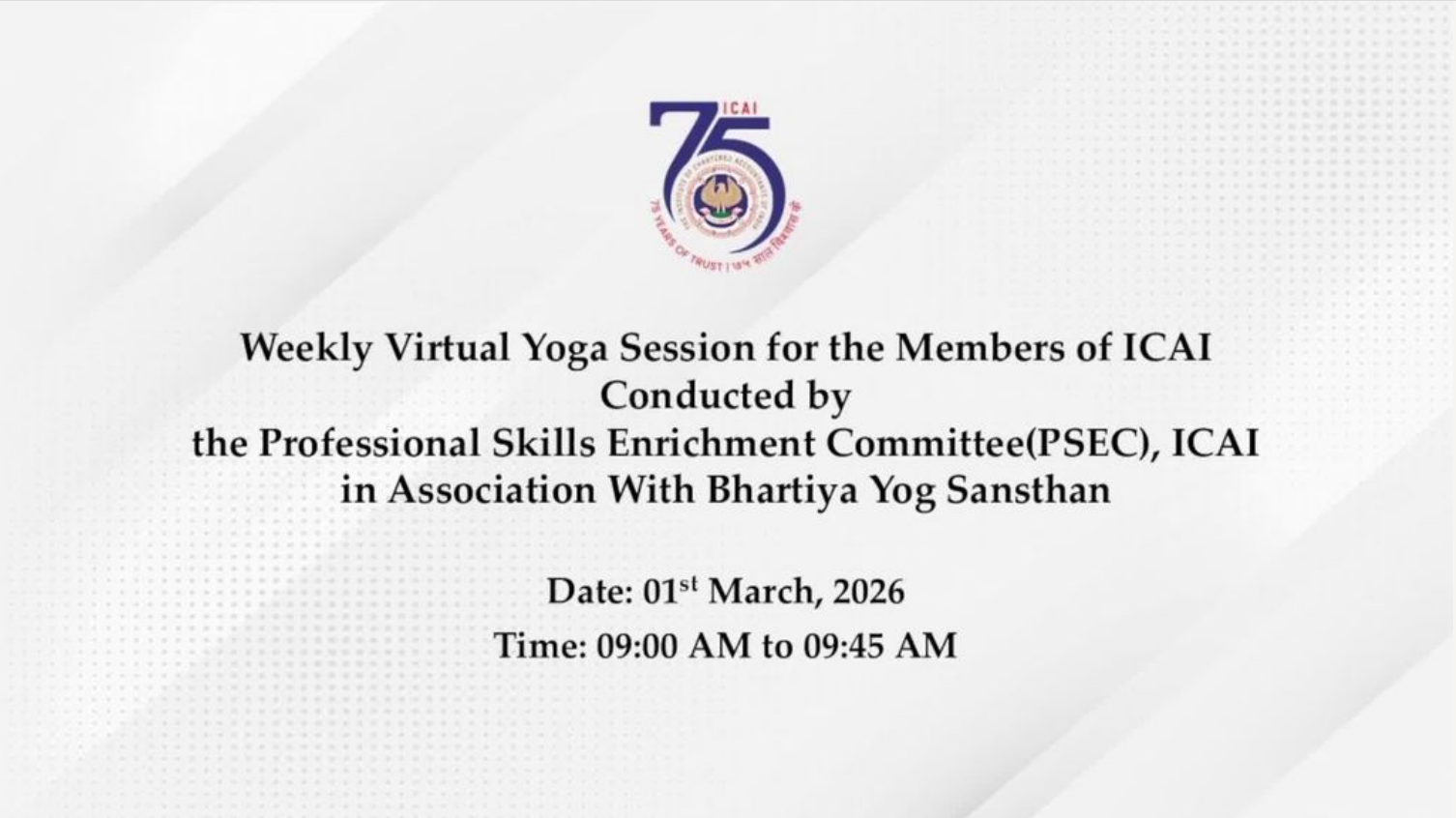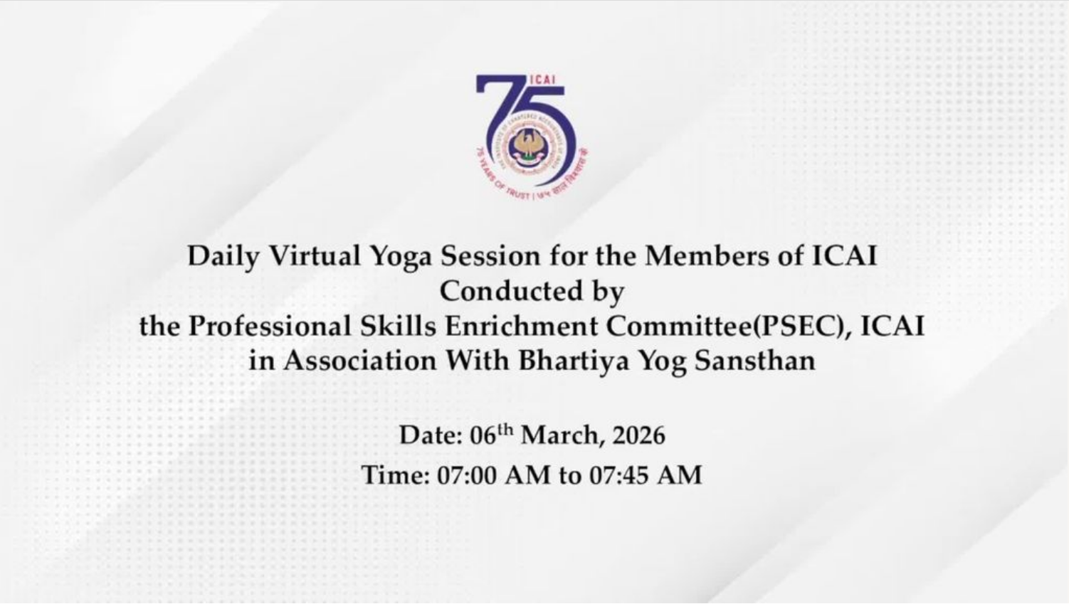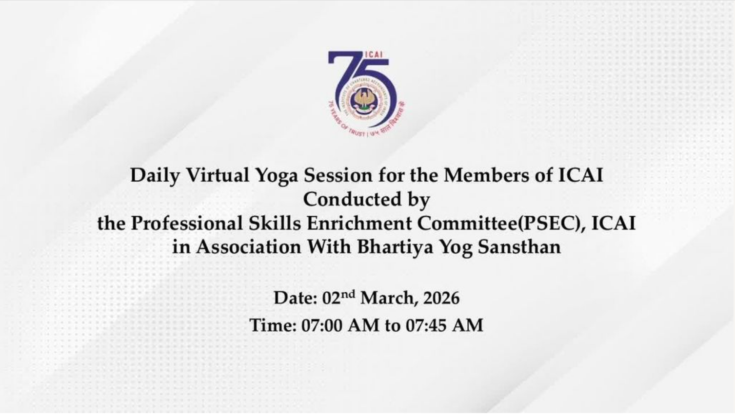 Daily Virtual Yoga Session for the Members of ICAI...