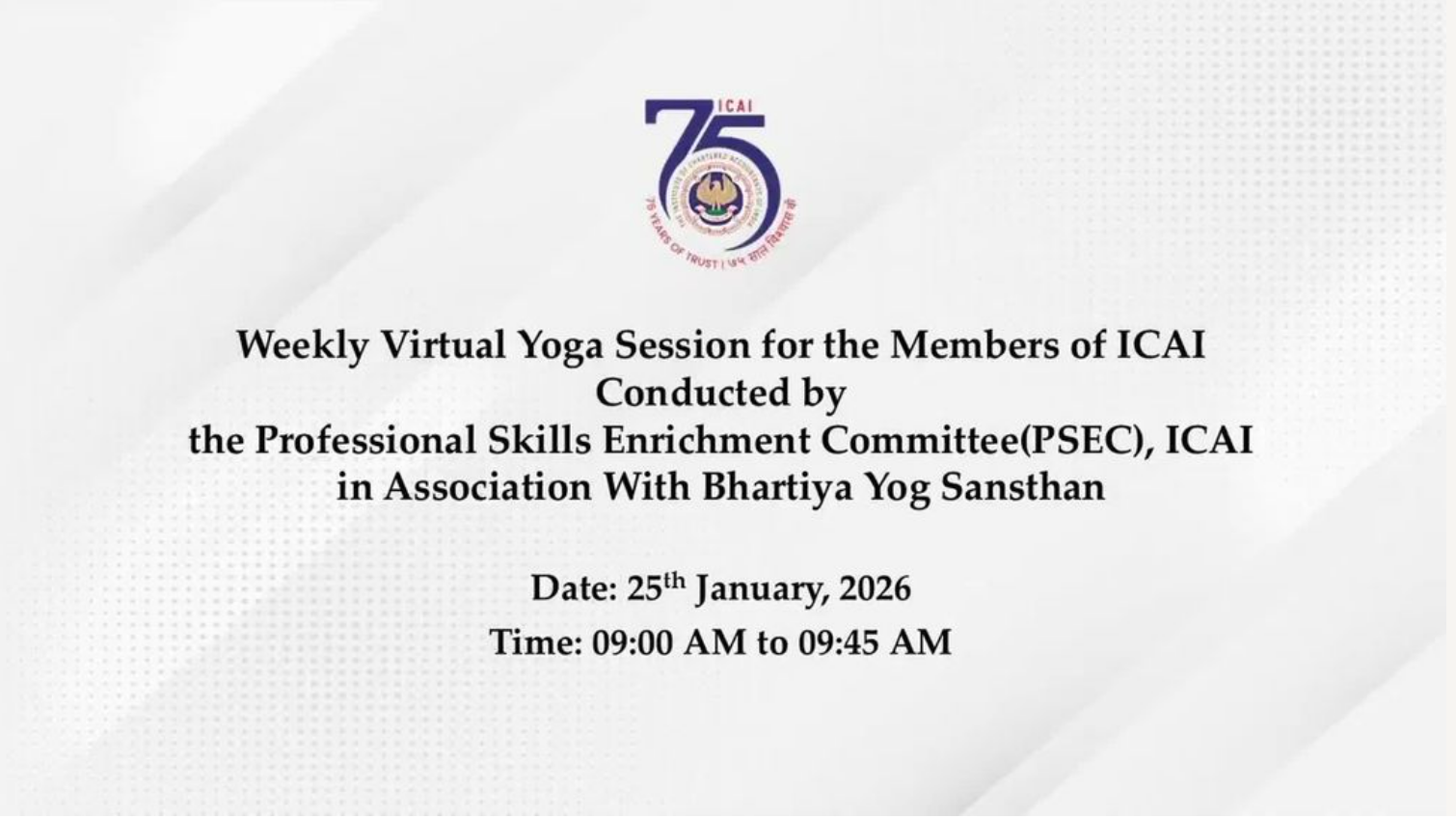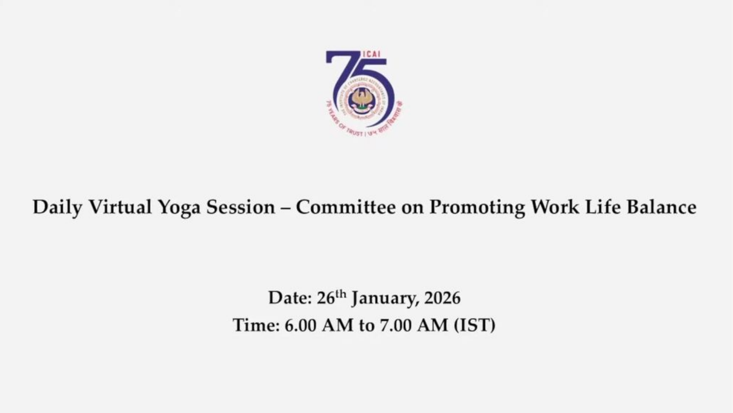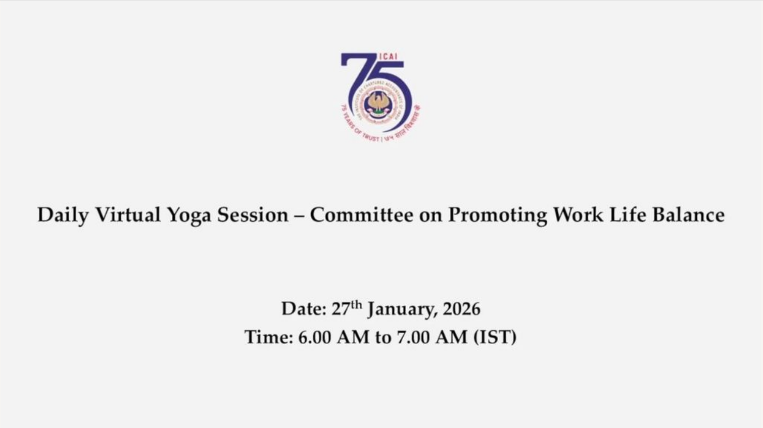 Daily Virtual Yoga Session for the Members of ICAI...